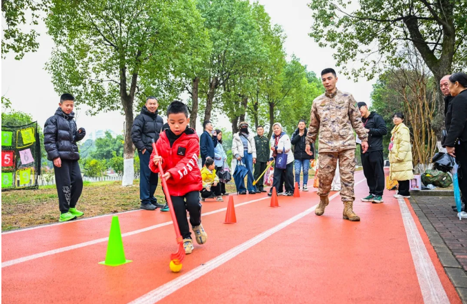 在集市的另一个场区,有专为军娃打造的“新春奇趣游园会”。游园会设置了“福气套圈”“蒙眼摸福”等趣味游戏,孩子们手持“游园护照”,集章兑换精美小礼品,欢声笑语回荡在营区。