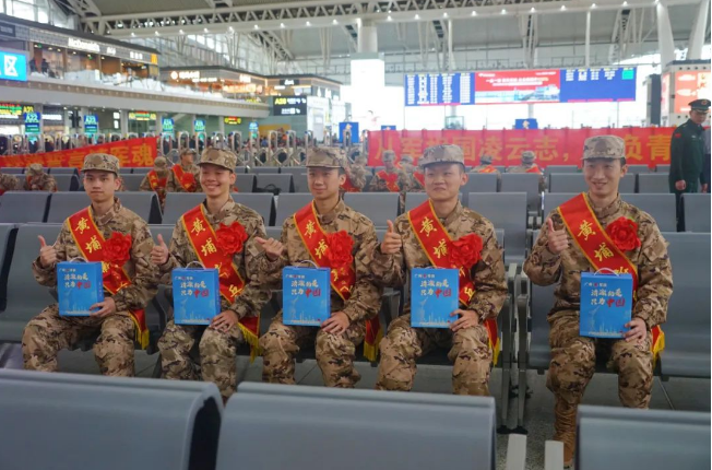 3月16日上午,400余名新兵在广州南站站台集结登车,搭乘高铁专列前往部队驻地,标志着2025年广州地区春季新兵运输正式拉开序幕。