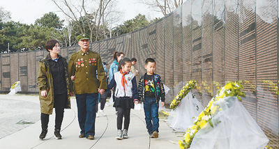 清明节前夕,来自浙江宁波、陕西西安和咸阳、辽宁沈阳和锦州的部分抗美援朝烈士亲属和志愿者在抗美援朝志愿军老战士的带领下,来到沈阳抗美援朝烈士陵园缅怀、悼念革命先烈。辛阳樊洪波 影报道