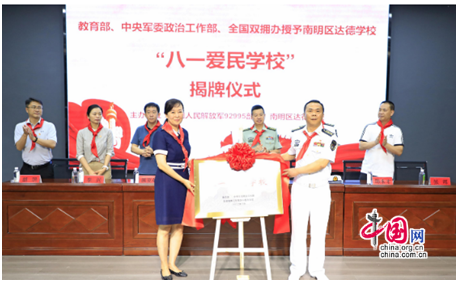 6月27日,中国人民解放军92995部队援建“八一爱民学校”揭牌仪式在贵阳市达德学校(青秀校区)举行。
