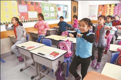 12月20日,学生到校进行室内锻炼。12月19日至21日停课期间,为解决部分学生在家无人看管问题,中国农科院附属小学允许学生来到学校,为他们安排学习和生活,提供饮食服务。新华社记者 李文 摄
