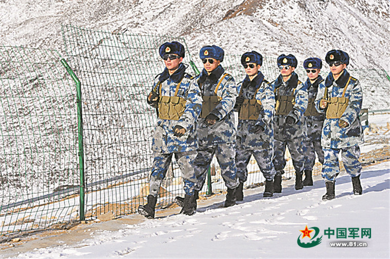 指挥排长马登(右)带队巡逻。