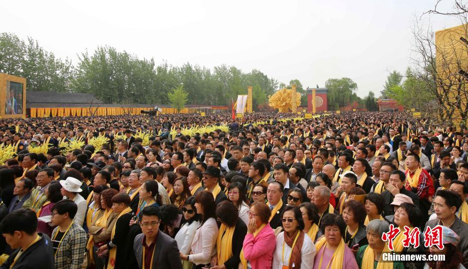 4月21日,农历三月初三,乙未年黄帝故里拜祖大典在新郑市黄帝故里隆重举行。来自美国、法国、加拿大等20多个国家和地区的知名侨领和文化艺术界知名人士、感动中国人物等约8000名华夏儿女优秀代表出席大典。中新社发 王中举 摄
