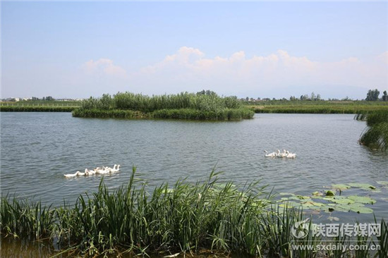 在宝鸡岐山段蔡家坡, 一片片水面波光粼粼,芦苇在风中摇曳,人们可以在这里戏水泛舟,成群的飞鸟鸣叫着在天上盘旋。“ 短短几年时间发生了翻天覆地的变化,特别是十里景观芦苇长廊,是岐山开展渭河综合整治的一道亮丽风景,也成为周围群众休闲、娱乐的一个好去处。”岐山县水利局魏军刚主任说。