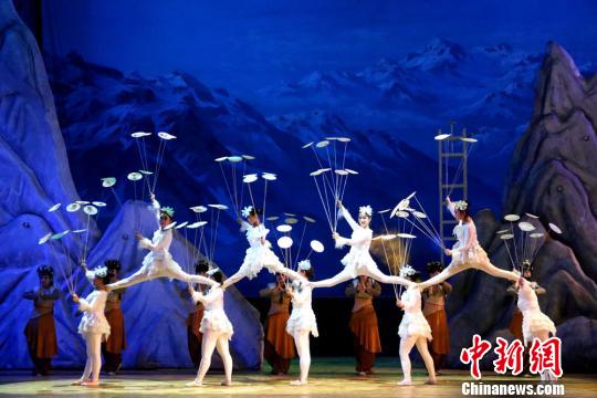 大型杂技剧《敦煌神女》是在敦煌莫高窟壁画故事的基础上创作的,该剧将歌舞、音乐、杂技、武术等多种元素融合在一起,通过鹿女舍身造福人类的感人故事,深情地讴歌了中国传统文化中勇于舍己为人的宝贵精神,传递着向善守正、积极向上和高尚思想境界的正能量,深受广大观众喜爱。张晓亮 摄
