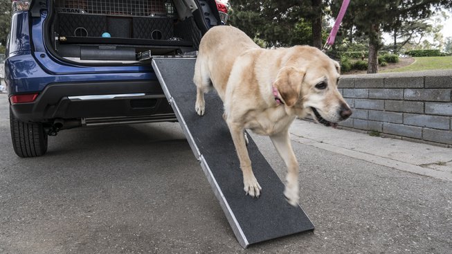 这款汽车最大的改动就在后备箱。车后厢装货区的地面和四周都经过改造,狗狗坐垫下方有专门上下车的折叠式坡形轨道,还设有储藏室、折叠式饮水机和食物分配器。货物区域本身包含狗床,夹式安全带,这样可以增加安全性也能防止其乱跑。