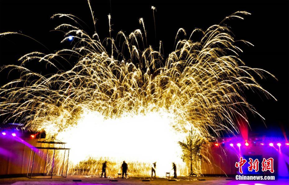 民俗绝技“打铁花”亮相敦煌 美如烟花吸引游人