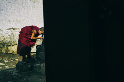 稀稀落落的偶遇几个年轻喇嘛,这些充满神秘感的年轻人的脸上大多带着羞涩,四目对视就会吹下眼睑低头匆匆而过,所以我留下的几乎都是他们的背影。拍摄人文题材的时候我习惯用索尼A7R的液晶屏取景,很大程度上增加了拍摄的隐蔽性,特别是贴地的超低角度拍摄非常便利。