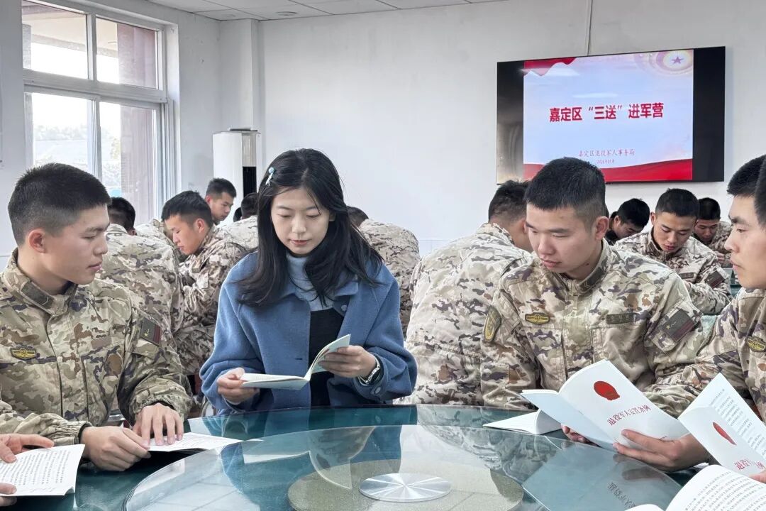 为进一步帮助驻嘉部队官兵了解退役军人相关政策,1月23日下午,上海市嘉定区退役军人事务局联合上海工商职业技术学院在驻嘉部队开展2026年度“三送”进军营活动,来自驻嘉部队近50名官兵参加。