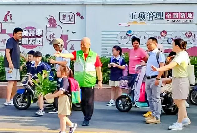 “家长您好,这边不允许车辆掉头,直接放下孩子,请立即驶离。”当日,在两个学校门口及周边路段,退役军人志愿者身着志愿者马甲,护送学生有序过马路,并配合交警疏导来往车辆,缓解学校门口路段的车流压力。真新街道退役军人志愿服务队在真新小学校门道路两旁,及时疏导门口过往车辆人流,引导学生安全通过马路,协助交警、学校共同维持秩序。“小朋友,不要跑哦”,“您好,请把电动车往边上停一停”……。