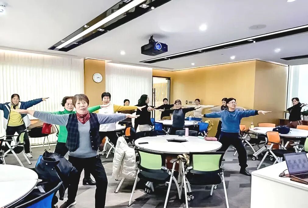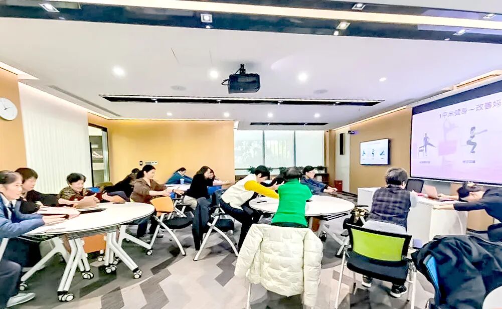 基于丰富的健康指导经验,岳静老师根据在场人员的年龄段特点,针对性传授了多套科学骨盆锻炼方法,并现场带领实操练习。大家积极响应、认真配合,展现出高昂的学习热情。岳静老师对学员的学习态度和实操表现给予了充分肯定。