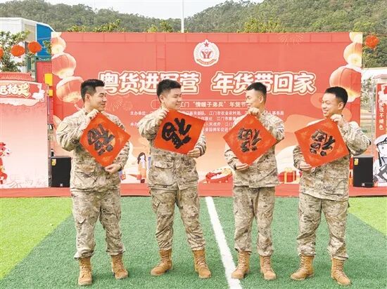 江门对驻江门部队、海军江门舰部队、“城连共建”部队官兵也十分关心。江门立足“中国著名侨乡”的地域特色,创新双拥活动载体,打破传统慰问模式,将节日慰问与消费帮扶、乡村振兴深度融合,于2月5日举办“粤货进军营 年货带回家”情暖边海防春节慰问系列活动,为驻江人民子弟兵送上新春祝福,推动军地共建与地方发展同频共振。