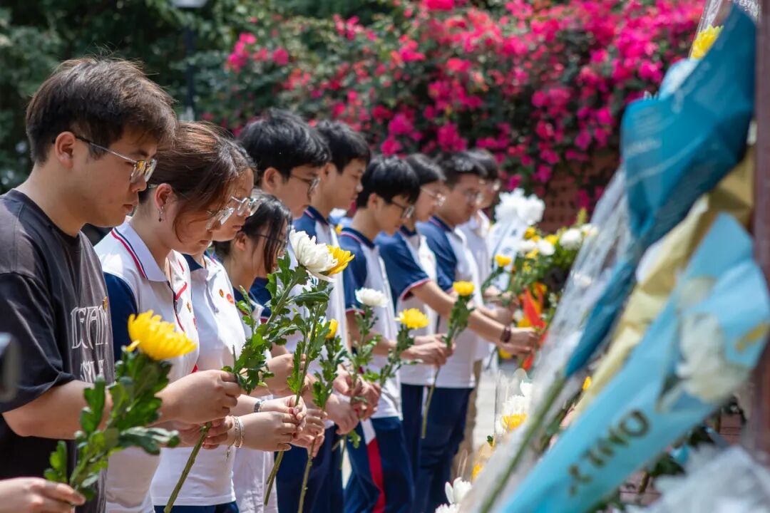 默哀完毕,志愿服务队队员代表缓步上前,向烈士纪念碑敬献花篮,仔细整理花篮缎带,表达对英烈的无限追思。全体人员依次上前,手持鲜花,轻轻摆放在纪念碑前,深深鞠躬,以最质朴的方式寄托哀思、告慰英灵。