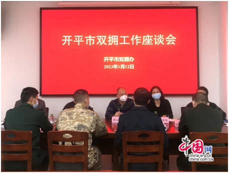 为深入学习贯彻落实党的二十大精神,纪念延安双拥运动80周年,巩固发展军政军民团结,1月12日,开平市军地齐聚一堂,召开2023年迎新春双拥工作座谈会暨军地需求“双清单”会议,共叙军政军民鱼水情谊,共商发展大计。开平市双拥办副主任周永忠主持会议。驻开平有关部队,开平市教育局、科工商务局、文化广电旅游体育局等开平市双拥工作领导小组有关成员单位参加会议。