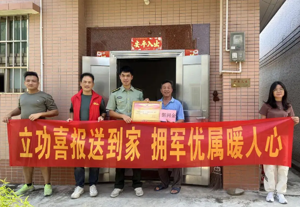 进一步弘扬新时代拥军优属光荣传统,增强军人荣誉感和军属自豪感,营造热爱国防、优待军属的良好社会氛围,近日,开平市龙胜镇组织为荣获“四有”优秀士兵表彰的军人家属送喜报,与军属共享荣耀和喜悦,把党和政府的关心关爱传递到军人军属们的心坎上。慰问组分别深入走访张健康、黄金荣、张伟豪3名优秀士兵家庭,向军属们表示热烈的祝贺,送去喜报、慰问金和慰问品,并与军属们拉家常,问冷暖,交心声。