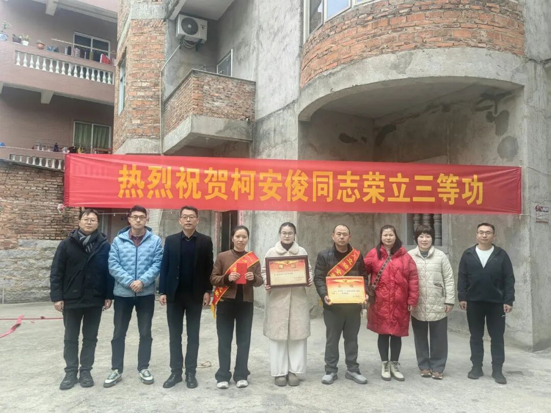 送喜报的队伍一路前行,红绸飘扬、喜气盈街,所到之处洋溢着浓浓的尊崇与温情。闻讯而来的邻里乡亲纷纷驻足,脸上写满敬意与自豪,掌声、祝福声此起彼伏。慰问组将饱含荣誉的立功喜报郑重递到军属手中,为他们佩戴上鲜红绶带,送上慰问金和新春祝福,并关切询问家庭生活状况,感谢他们默默支持亲人戍边卫国。一句句暖心话语,不仅传递了党和政府的关怀,更让“军属光荣”四个字在乡里坊间熠熠生辉。