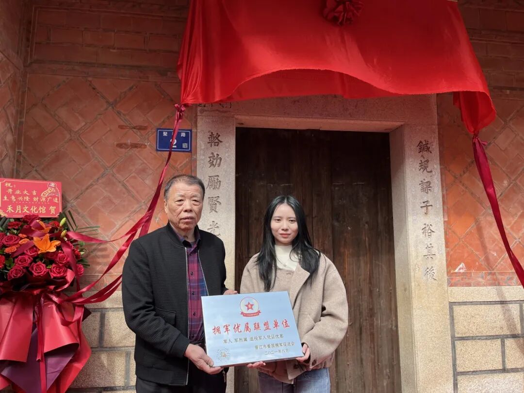晋江市爱国拥军促进会会长罗云授予“爱国拥军驿站”牌匾