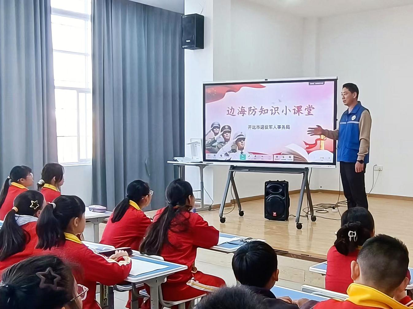 活动伊始,一场干货满满的边海防知识小课堂率先开讲。开远市退役军人事务局的业务骨干结合自身工作经验,用通俗易懂的语言为现场参与者讲解边海防的重要战略意义,分享戍边官兵顶风冒雪、坚守岗位的日常故事。图文并茂的展示让大家直观感受到边关哨所的艰苦环境,也更深刻理解了“守护”二字背后的重量。“叔叔,官兵们过年能收到家里的祝福吗?”“边关的冬天是不是特别冷?”……同学们带着满满的好奇踊跃提问,在一问一答的互动中,爱国拥军的种子悄然扎根。