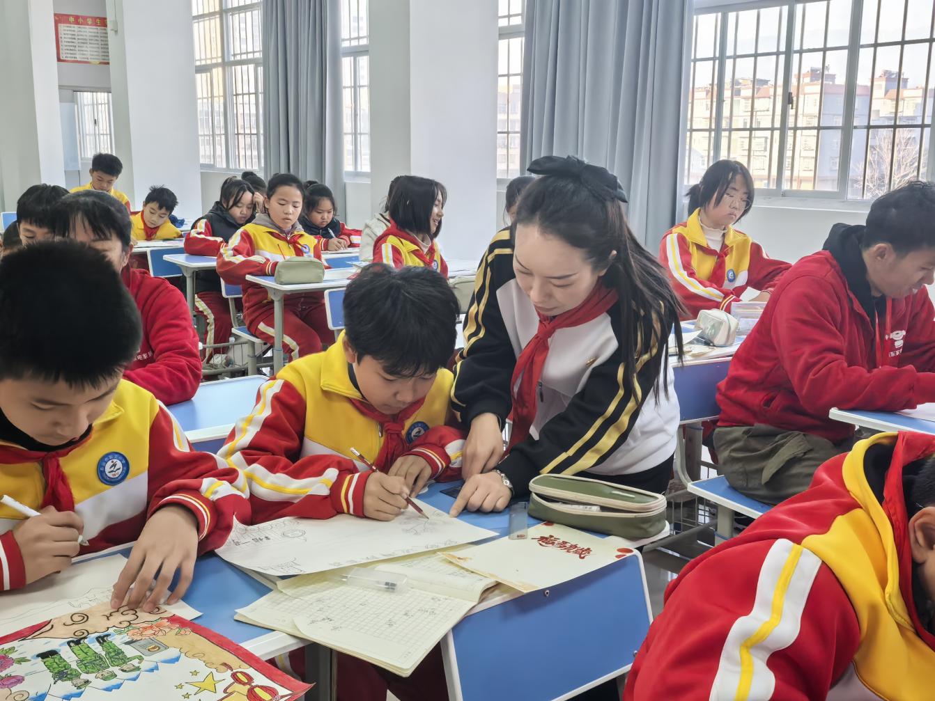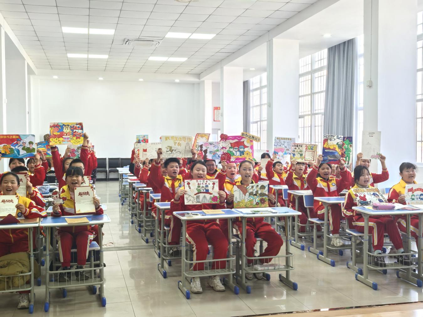 知识小课堂结束后,创作环节正式开启!同学们迫不及待地铺开画纸信笺,拥军企业代表也加入创作队伍,以“爱国拥军”为核心主题,尽情挥洒创意与真情。开远的小火车穿过凤凰花海、鲜艳的五星红旗飘扬在哨所上空、戍边官兵巡逻的坚毅身影、饱含敬意的暖心话语……每一笔色彩都承载着崇敬,每一行文字都传递着温暖。