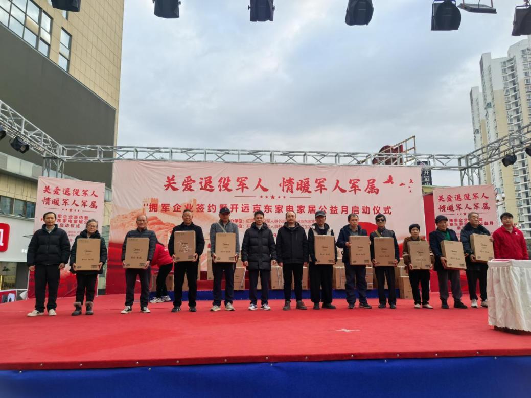 仪式现场,开远京东家电家居总经理李伟分享了企业参与拥军公益的初心,表达践行社会责任的决心。随后,开远市退役军人事务局与该企业签署拥军协议,搭建起政企携手拥军的合作平台。活动中,还为困难退役军人捐赠了 80 台总价值 3 万余元的家用电器,并向军人军属及退役军人发放 1600 张总价值 480 万元的家电家居储值卡,让大家切实享受专属福利。