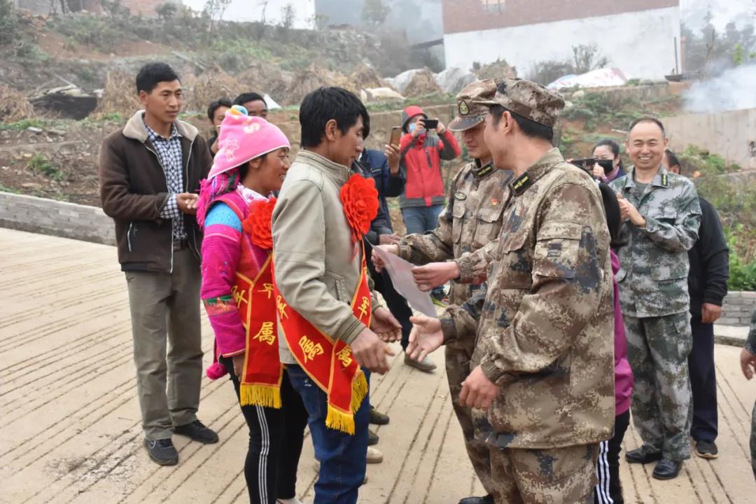 近日市人武部、市退役军人事务局联合相关乡镇负责人为2019年度立功受奖现役军人家庭送喜报对他们的子女立功表现表示祝贺。伴随着喜庆的锣鼓声,3月19日上午,慰问组一行来到碑格乡左美果村,对现役军人王学伟的家属送去了喜报。