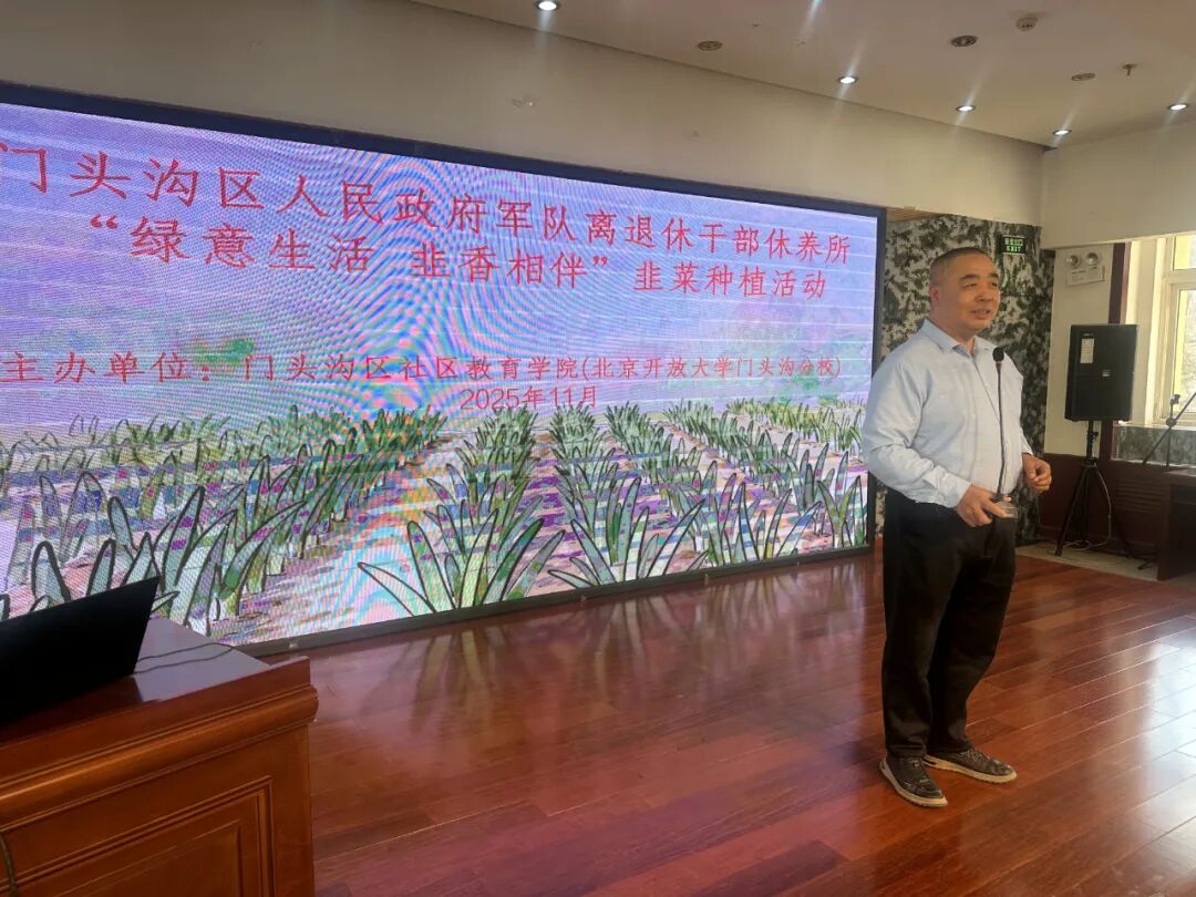 随后,区军休所特别邀请区社区教育学院专业老师带来盆栽韭菜种植公益课。老师从“选盆技巧、土壤配比、种子处理”到“日常浇水频率、施肥要点、病虫害防治”,进行细致讲解,还手把手指导军休干部栽种幼苗。大家认真操作、踊跃提问,现场氛围热烈,不少军休干部表示:“跟着老师学种植,既能动动手、解闷儿,还能等着吃自己种的新鲜韭菜,特别有意义!”