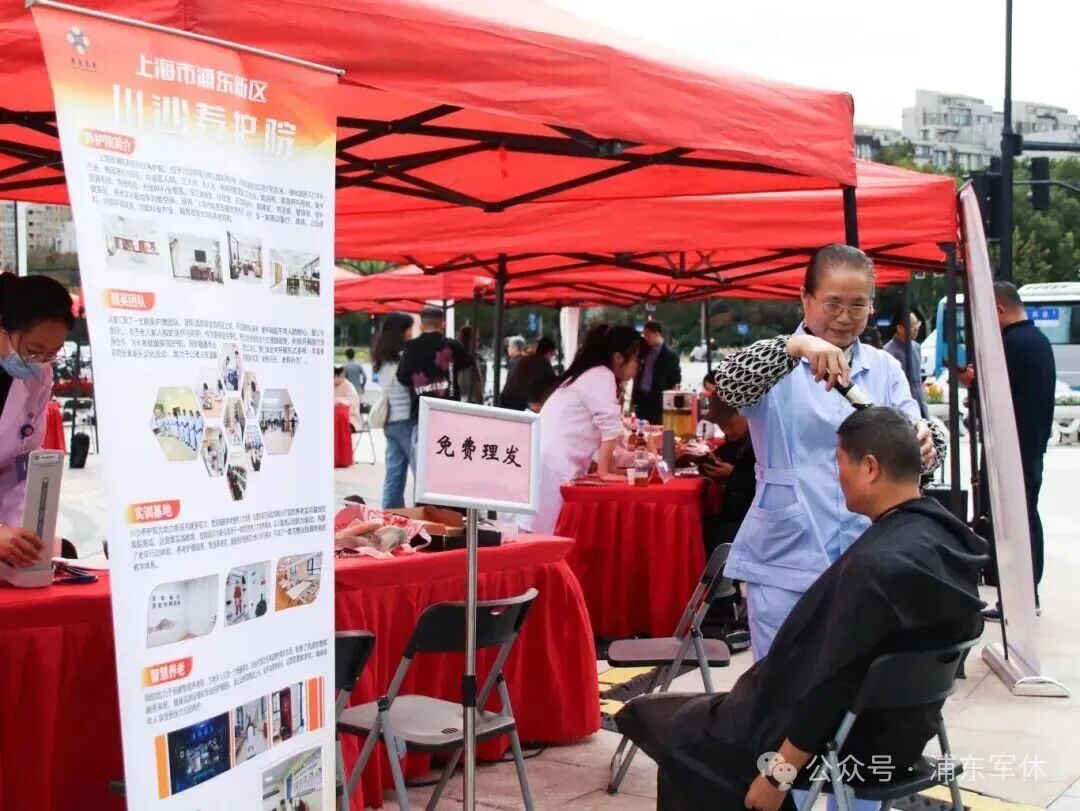 授牌仪式后,丰富多彩的志愿服务活动同步开展。上海市第七人民医院、浦东新区浦南医院、上海中医药大学协爱蒲安中医门诊部、上海中医药大学协爱璟安康复医院、上海九宜堂健康管理有限公司等多家医疗机构带来公益义诊服务,为现场群众提供专业医疗咨询、健康检查和中医体验,让居民在家门口就能看上“专家号”;上海浦惠养老服务(集团)有限公司开展养老服务介绍、智慧养老展示和健康管理咨询,为有需要的群众答解惑;曹路养护院、川沙养护院则提供养老机构推介、便民服务及非遗手工体验,即科普知识,又切实解决群众实际需求,成为大家围观咨询参与的热点。此外,活动现场还设立了空军节打卡,吸引了周边群众、商户和过往游客纷纷参与,现场气氛热烈,让大家更直观感受中国人民解放军空军胸怀空天、建功空天、致胜空天的家国情怀,浓厚的节日氛围与鲜明的拥军主题相得益彰。