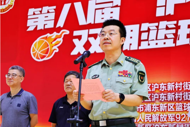 近日,上海市浦东新区沪东新村街道第八届“沪东杯”双拥篮球联谊赛开幕,浦东新区区委常委、区人武部政委翁俊军出席活动并发表讲话,向所有参赛队伍及官兵表示热烈欢迎和诚挚问候。