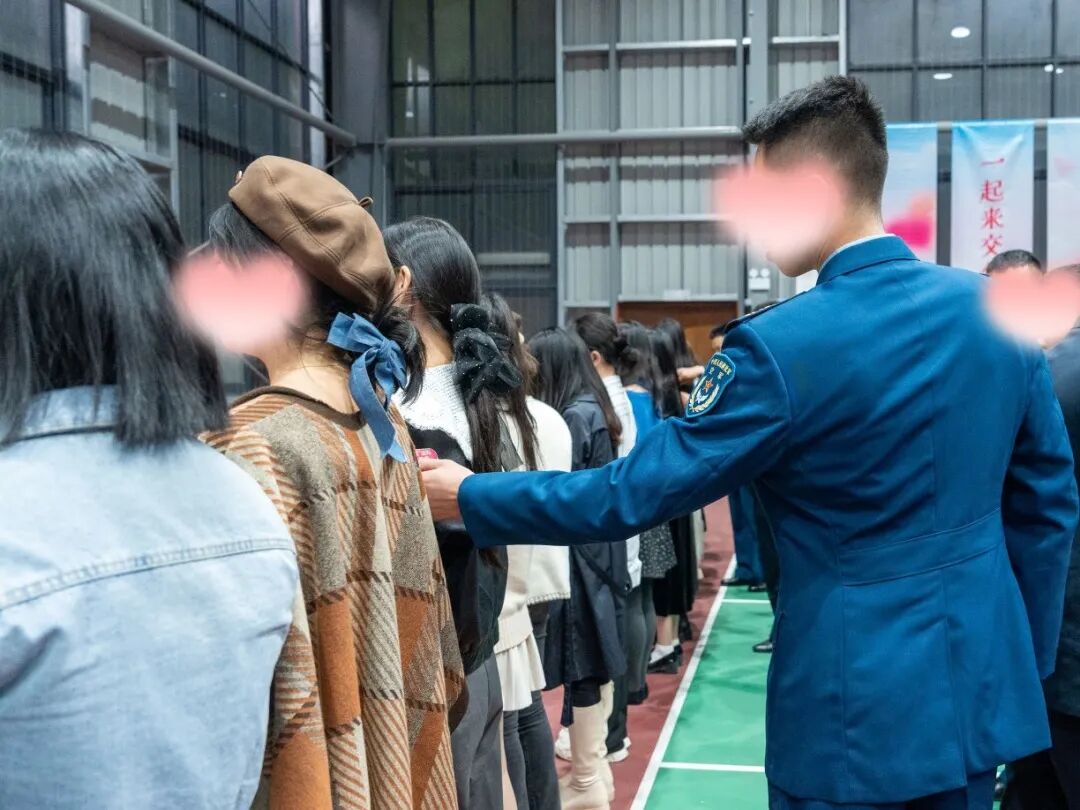 活动尾声,“约定·未来”环节温情开启。“心动互选”中,女嘉宾们背对舞台,男军官将“心动徽章”轻轻贴在心仪对象的手臂上,每一枚徽章都承载着默默传递的心动;随后女嘉宾转身回应,用同样的方式传递心意。