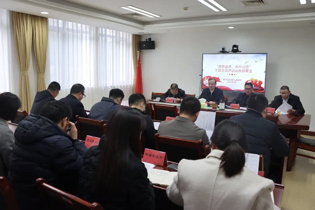 1月27日,泉州市退役军人事务局召开“感恩奋进、多作示范”主题实践活动动员部署会。市退役军人事务局局长唐良元出席会议并讲话,副局长刘洪主持会议。局领导班子成员、机关全体干部及直属单位负责人参加会议。