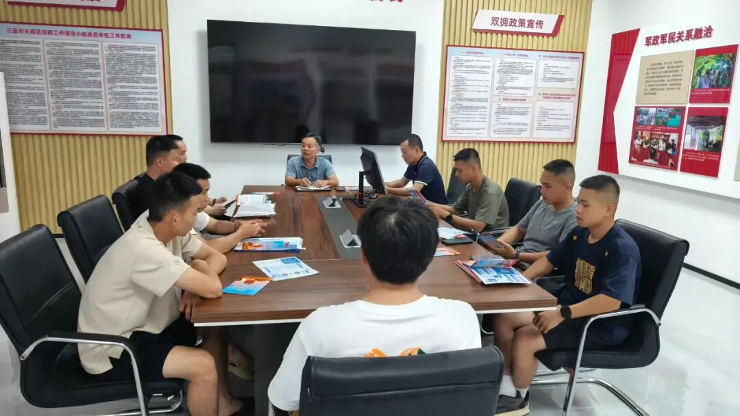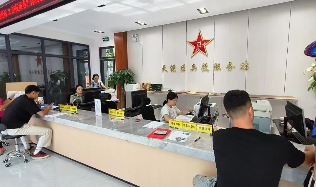 为提升服务效率,三亚市天涯区退役军人服务中心在天涯区武装部兵役服务站与武装部联合办公,集中办理建档立卡以及优待证申请等退役报到手续、预备役登记、退役军人服务“一件事”的帮代办等多项业务,退役军人只需要携带相关材料,他们只跑一次就能完成全部报到事项,减少了他们多部门来回跑的次数。