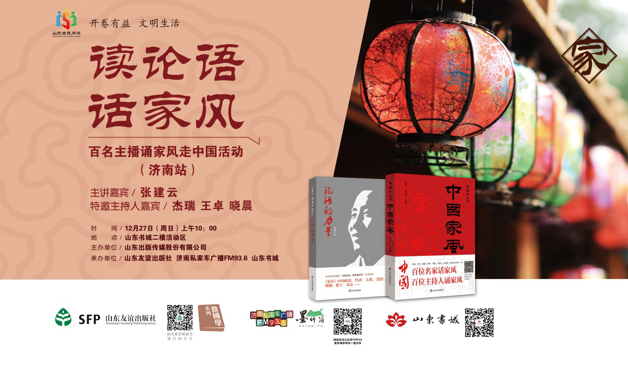 中国网讯 2015年12月27日上午10时,山东友谊出版社联合济南私家车广播FM93.6 ,携手山东书城、济南市妇联共同举办了“读论语 话家风”百名主播诵家风走中国活动(济南站)。