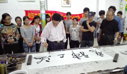 启功弟子洪学平书法家正在挥毫。王祖能/摄
