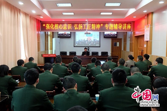 中国网湖南讯 1月9日下午,从常德市消防武警支队十八楼会议室内传出一曲激昂高亢的《国歌》声,一堂“强化核心意识、弘扬工匠精神”的专题讲座在齐唱《国歌》声中开讲,检察官为全市消防部队营以下干部学习贯彻十八届六中全会精神专题培训班送上了一份精美的精神食粮。主讲人是常德鼎城区检察院副检察长邹永忠。