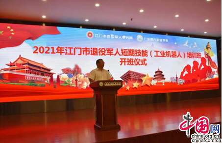 7月12日上午,由江门市退役军人事务局主办、广东南方职业学院承办的江门市2021年退役军人短期技能(工业机器人)培训班开班,市退役军人事务局党组成员、副局长黄玉华出席开班仪式并致辞。