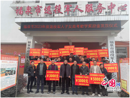 福泉市退役军人事务局举行2023年度退役军人子女高考助学奖励金发放仪式,为30名福泉籍(现)退役军人子女发放高考助学奖励金共计9.6万元。