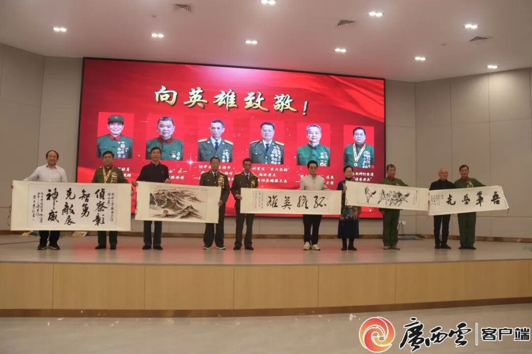 活动期间,广西爱国拥军促进会宣布启动与广西舰文化共建、慰问维和官兵家属等系列活动。当天举行的向一等战功英雄致敬活动上,英雄代表获赠书画名家创作的作品及慰问品。