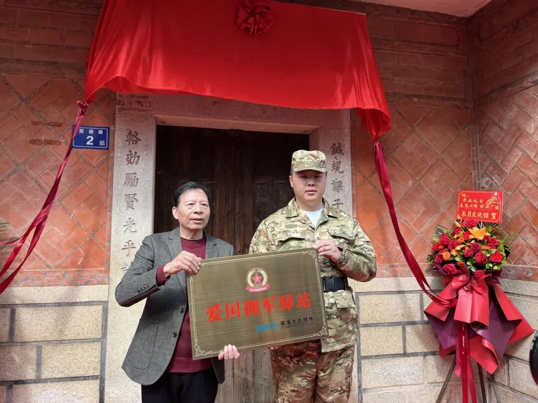晋江市爱国拥军促进会会长罗云授予“爱国拥军驿站”牌匾