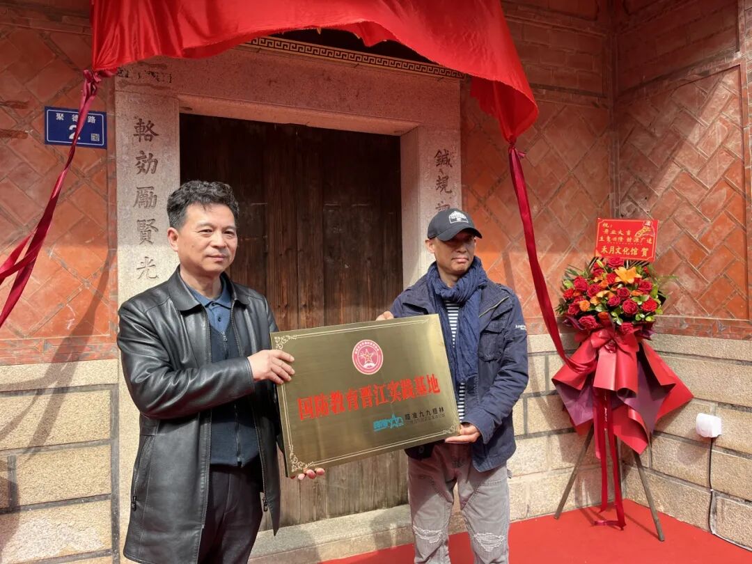 福建省全民国防教育协会执行秘书长陈建平授予“国防教育晋江实践基地”牌匾