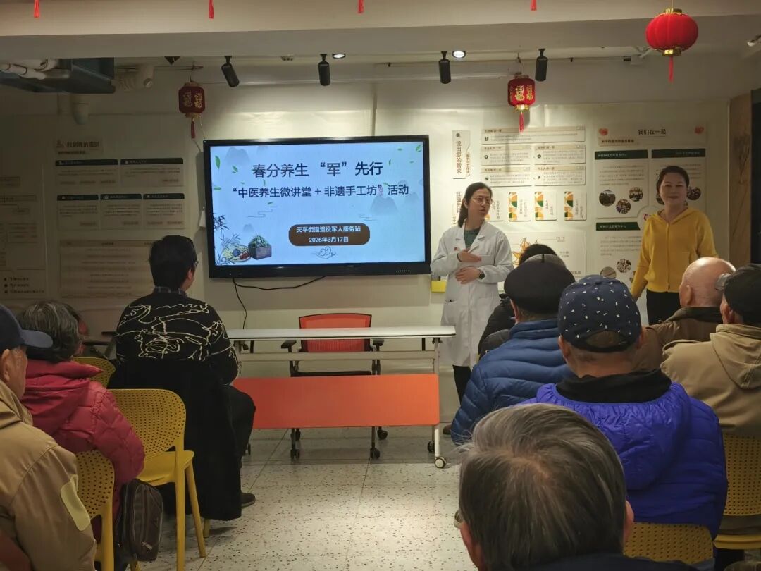 春分时节,细雨润物。3月17日,上海市徐汇区天平街道退役军人服务站组织开展了一场寓教于乐的“中医养生微讲堂+非遗手工坊”活动,将节气的养生智慧与暖心关怀送给退役军人和其他重点优抚对象。