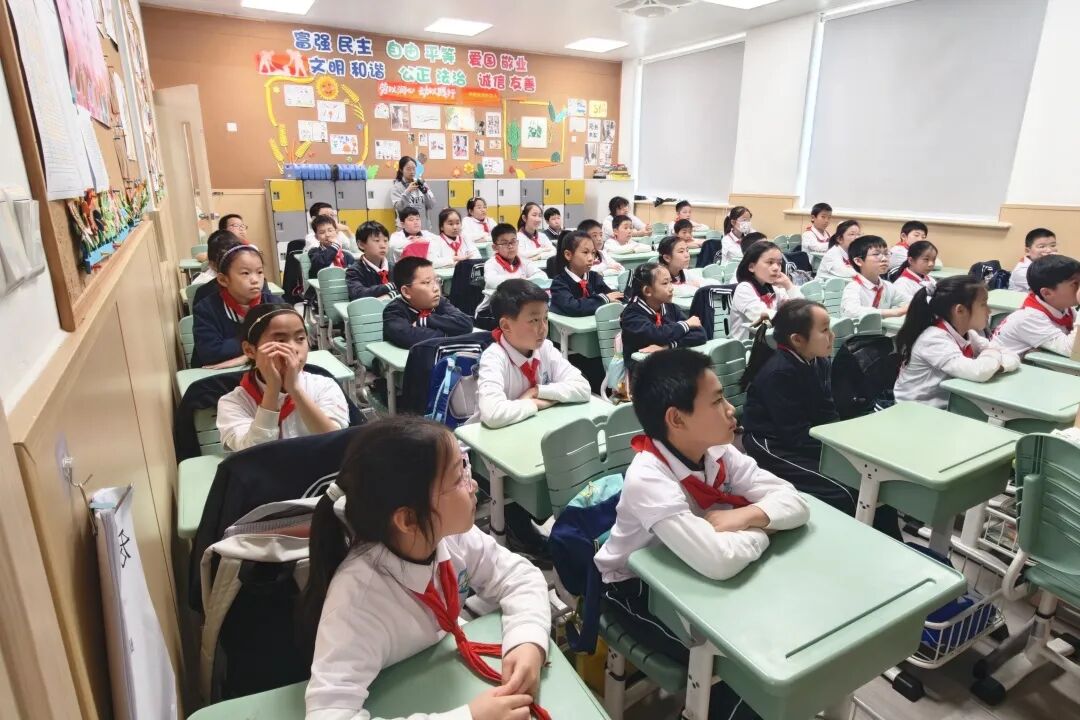 互动交流环节气氛热烈融洽,同学们踊跃举手、积极发问,围绕火箭发射原理、太空生活趣事、航天追梦之路等话题大胆提问,童真质朴的话语尽显新时代少年对浩瀚星空的无限向往。面对孩子们的热切好奇,戴维、邹珺两位军代表逐一耐心解答,用亲切温和的话语回应大家的航天梦想,殷切寄语同学们心怀山海、眼有星辰,从小树立航天报国、强军兴邦的远大理想,潜心勤学苦练、锤炼过硬本领、强健身心体魄,以航天英雄为榜样,以青春奋斗赴征程,长大后立志报效祖国、建设国防、逐梦苍穹。