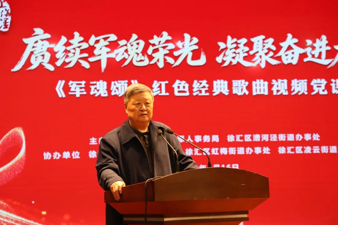 4月16日,“赓续军魂荣光 凝聚奋进力量”《军魂颂》红色经典歌曲视频党课,在徐汇区漕河泾街道社区党群服务中心举行。海军上将、解放军原总政治部副主任兼军纪委书记童世平,徐汇区退役军人事务局党组书记、局长袁欣华,漕河泾街道党工委书记朱莺出席活动,来自漕河泾街道、长桥街道、虹梅街道、凌云街道的退役军人、优抚对象代表及局系统工作人员200余人,共同参与了这场别开生面的音乐党课。