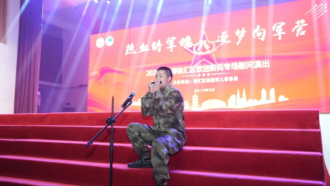 3月20日下午,上海市徐汇区退役军人事务局联合区人民武装部开展2026年上半年欢送新兵专场慰问演出,为即将奔赴军营的预定新兵们壮行鼓劲,以文艺为桥梁传递拥军温情,以精神为引领筑牢思想根基。