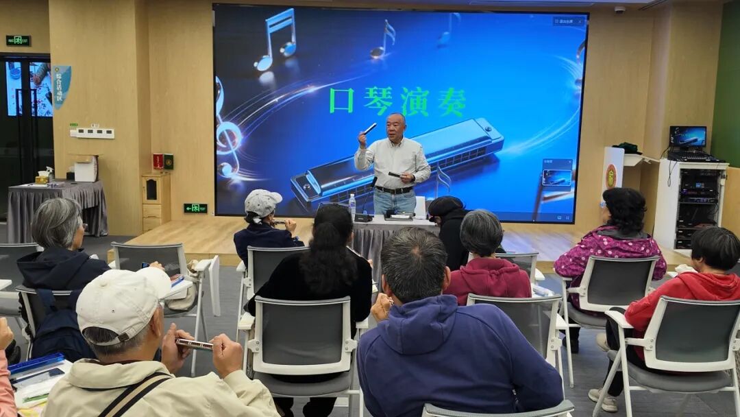 口琴班从基础持法、呼吸控制、音阶练习入手,搭配红色经典、军旅旋律与经典民歌,学员们在悠扬琴声中回味时光、收获温暖。