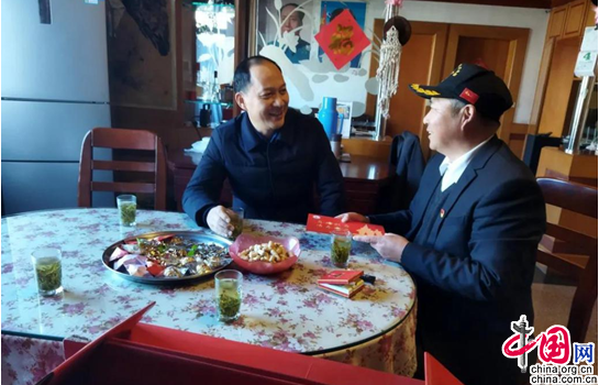 局长李军强一行走访慰问了一等功臣张苗生,一走进战斗英雄张苗生家中,李军强就亲切地和他拉起了家常:“您是我们国家的功臣,也是我们的骄傲!今天,我代表退役军人事务局来给您拜个早年!”