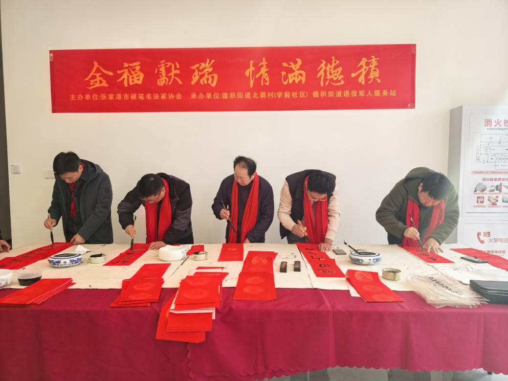 1月14日上午,张家港市硬笔书法家协会、德积街道北荫村(学前社区)、德积街道退役军人服务站联合组织开展“迎春送福”活动。现场,在多位书法家的挥毫泼墨下,一幅幅春联和“福”字承载着对新年的美好期盼,将浓浓的年味和新春的祝福提前送到辖区退役军人、军属手中。