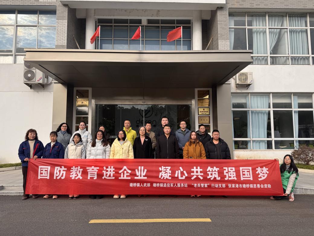 为深化国防教育,厚植国防意识,12月22日下午,张家港市塘桥镇退役军人服务站、镇人武部联合“老兵管家”行动支部走进张家港市德仁科教仪器设备有限公司,开展“国防教育进企业,凝心共筑强国梦”活动,营造全员关心国防、支持国防、建设国防的浓厚氛围。
