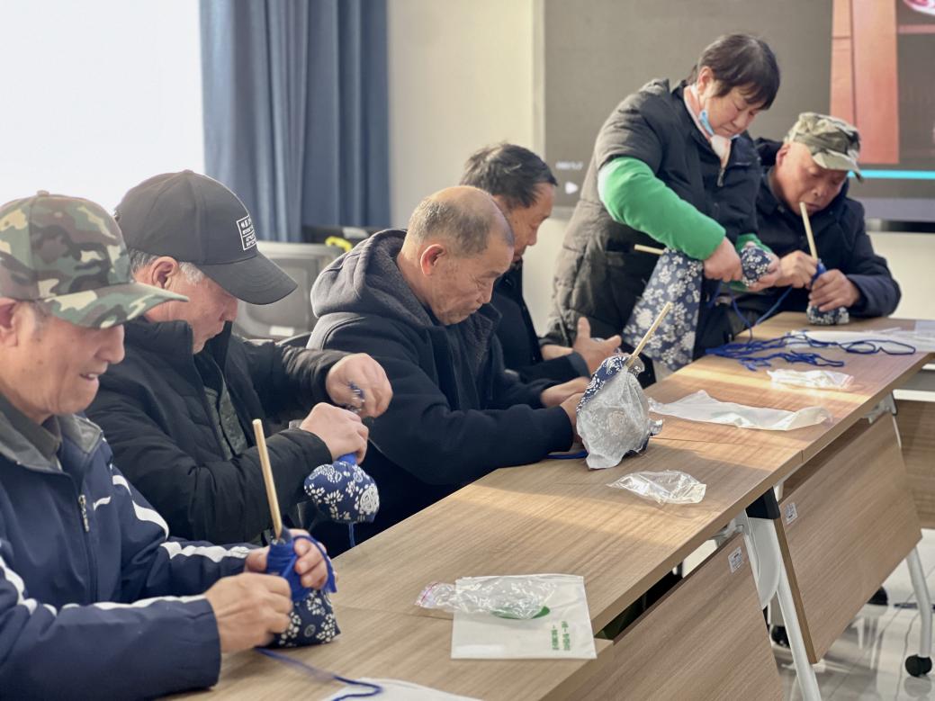 讲座结束后,服务站工作人员组织现场人员一起手工制作艾草锤。随后,服务站工作人员详细介绍了艾草的药用价值和拍打穴位的要点,大家手持艾草锤,学习了如何精准地拍打八虚,随着音乐的节奏,大家挥动手中的艾草锤,感受着拍打带来的舒适与放松,同时也加深了对传统文化的了解和热爱。