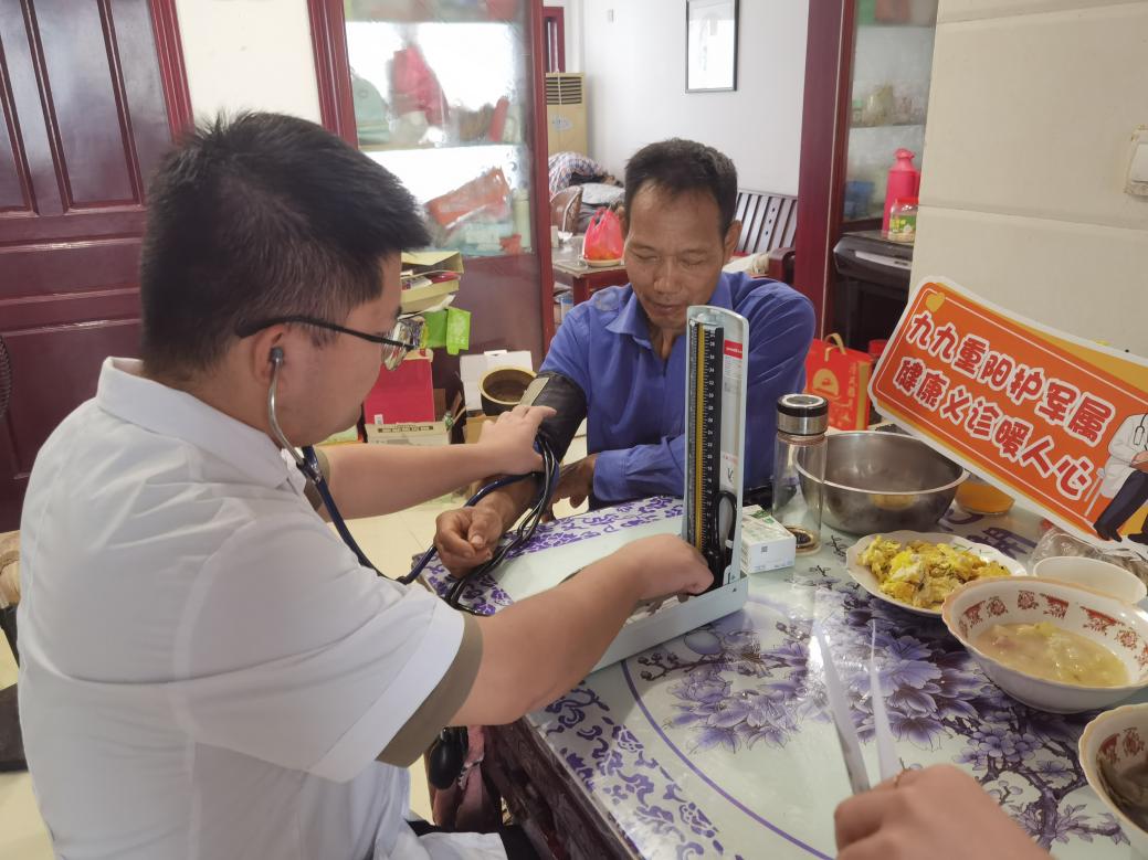 活动中,由医护人员和服务站工作人员组成的服务团队,带着专业的医疗设备和健康宣传资料,逐一走进现役军人家中。医护人员首先为军属们细致地测量血压、血糖,认真记录每一项测量结果,针对军属的身体状况,耐心地给出个性化健康建议。