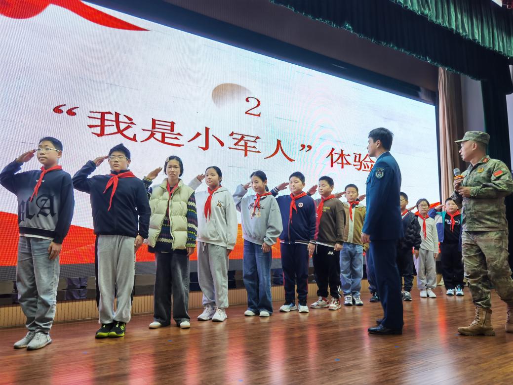 国防知识精讲解,队列体验强信念。退役军人张力、何星昱用通俗语言解读国防知识,并结合自身服役经历,分享执行任务的难忘瞬间与感人故事,这不仅让学生们直观了解国防力量的重要性,更在其心中播下“爱党爱国爱军”的种子。在“我是小军人”体验环节,学生们在退役军人指导下,亲身实践稍息、立正、敬礼等标准队列动作,切实感受军人严明的纪律与过硬的作风,进一步激发对军人职业的尊崇和对国防事业的热爱。